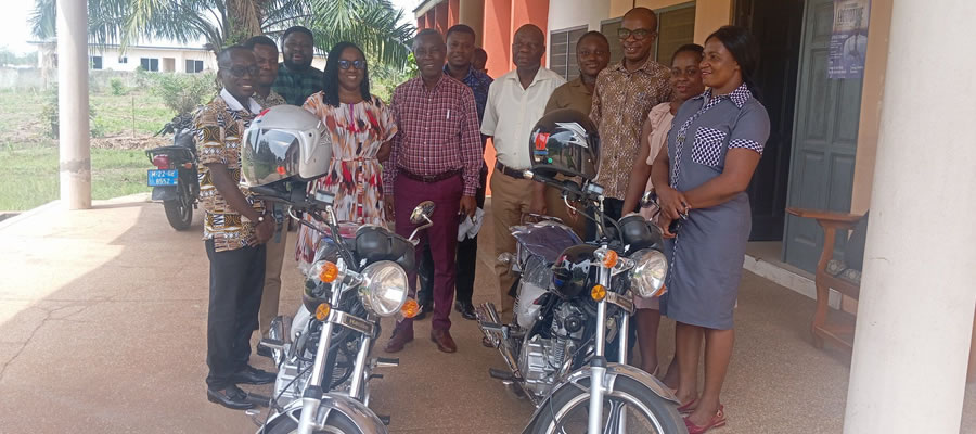 The District Chief Executive of the Agortime Ziope District Assembly has handed over two newly procured motorbikes to the Environmental Health and Sanitation Unit (EHSU).