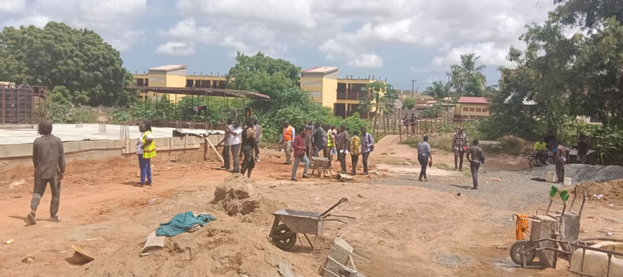 The projects were found to be at different stages of completion. While some structures had reached the lintel level, others had their ground floors completed, and the foundations for some two-storey buildings had also been completed. Work on the road projects at Pantang and Madina Estate was also progressing steadily.