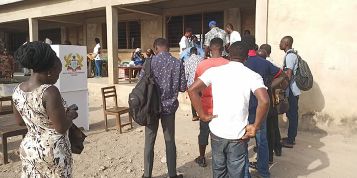 The situation has been attributed to late distribution of voting materials. Some polling stations the Ghana News Agency team visited around 0900 hours were recording relatively long queues.