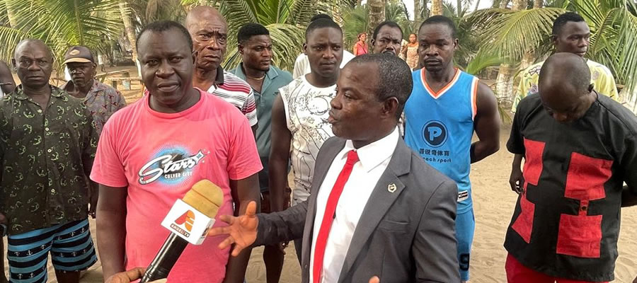 On his way to a meeting at the Central Regional Coordinating Council in Cape Coast, the Municipal Chief Executive Eric Stanley Acquach, made a brief stopover at the cleanup site to interact with participants.