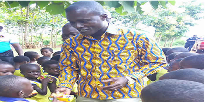 On behalf of the Presidency through the Assembly and the Education Directorate, an assorted drinks and biscuits were distributed to the fresh in-takes of class one in the various schools by the high ranking members including the MP for the Tano South Constituency.