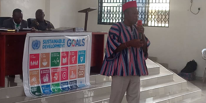The Municipal Chief Executive of the Ketu North Municipal Assembly, Anthony Avorgbedor as part of the 2nd Session of their General Assembly explain The Sustainable Development Goals (SDG) as the blueprint to achieve a better and more sustainable future for all to Assembly Members.