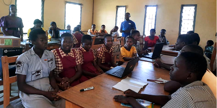 The District Chief Executive for Kintampo South, Mr Opoku together with the Member of Parliament for the area, Alexander Gyan, has visited some 90 female basic school pupils who are taking part in the government’s Girls'-in- ICT programme in the district.