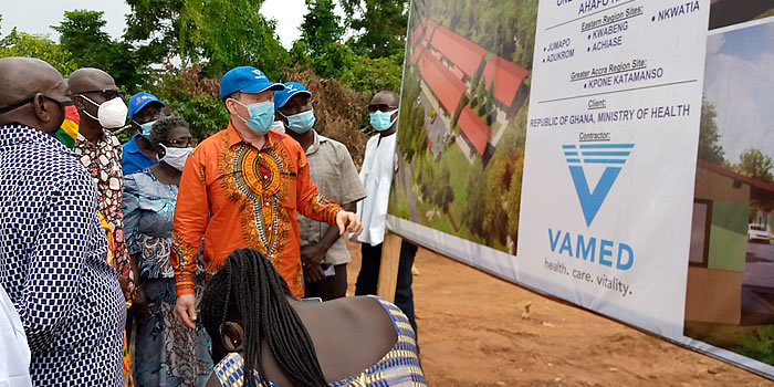 The Deputy Minister for Health, Dr. Bernard Oko Boye has cut the sod for work to start on a 40-bed hospital facility at Kwahu- Nkwatia and a polyclinic at Jumapo in the New Juaben North Municipality of the Eastern Region. The two facilities which will be executed by the VAAMED construction firm is expected to be completed in 30 months.
