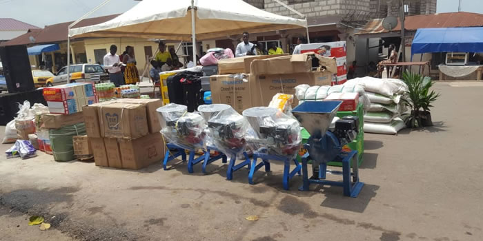 The beneficiaries received cash and various items such as popcorn machines, fridges, sewing machines, wheel chairs, fufu pounding machines, knapsack spraying machines, gas cylinders, and cutlasses among others.